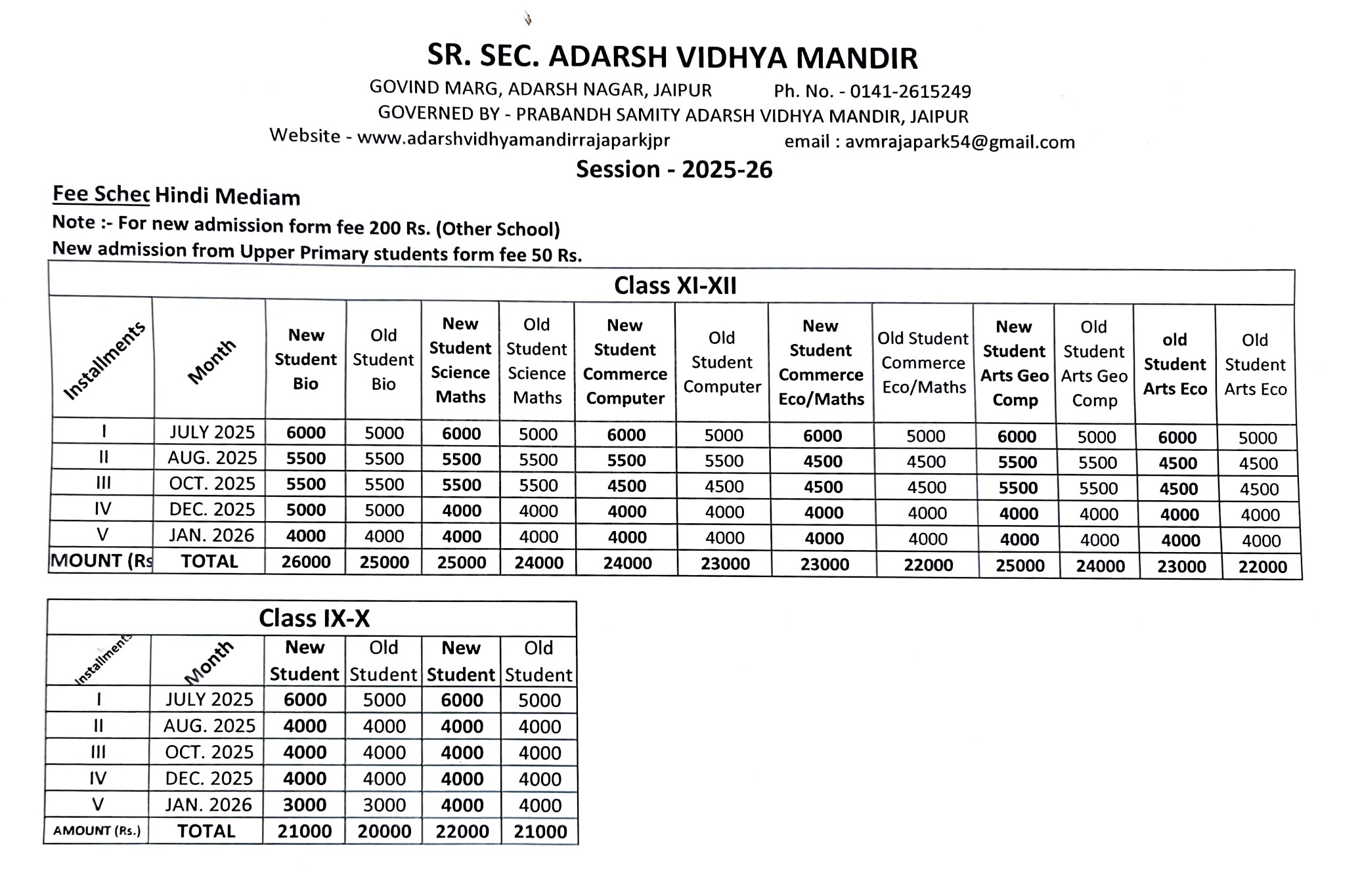 उच्च माध्यमिक आदर्श विद्या मंदिर, आदर्श नगर,जयपुर